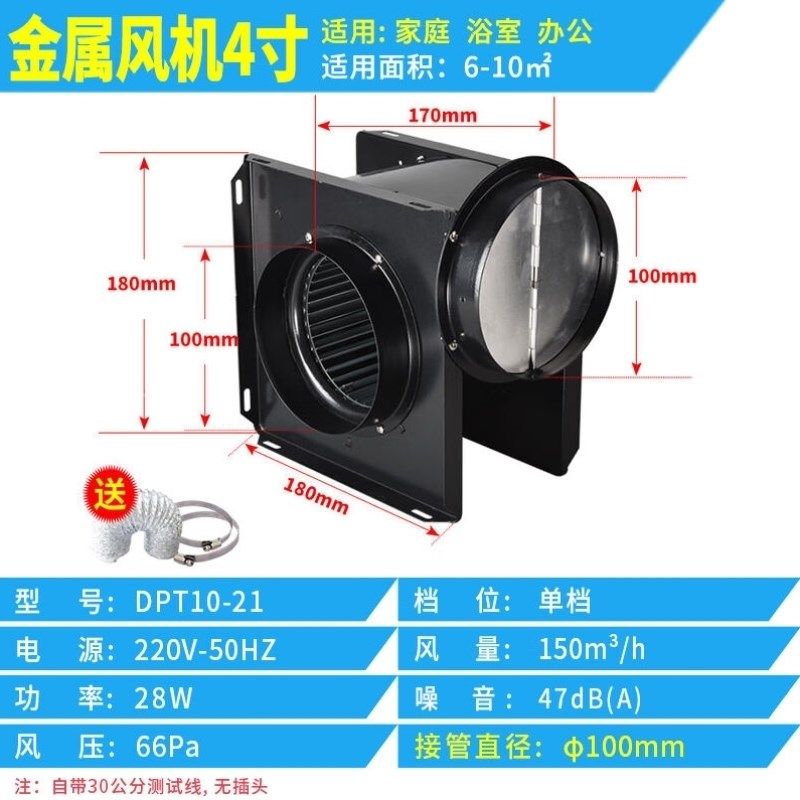 金羚排气扇管道式抽风机管道风机4寸强力工业大功率负压风机大风