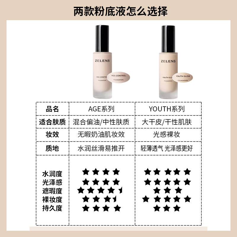 zelens粉底液age养肤控油持久云朵色水光滋润干皮youth奶油肌