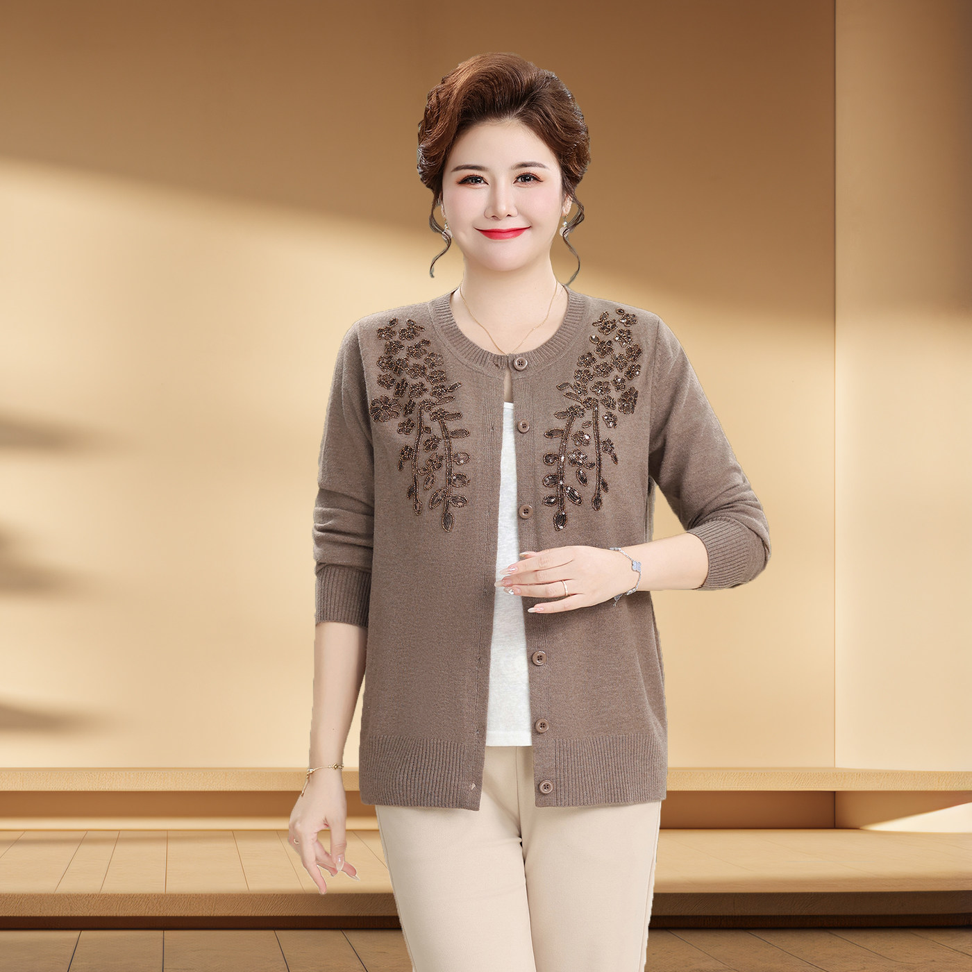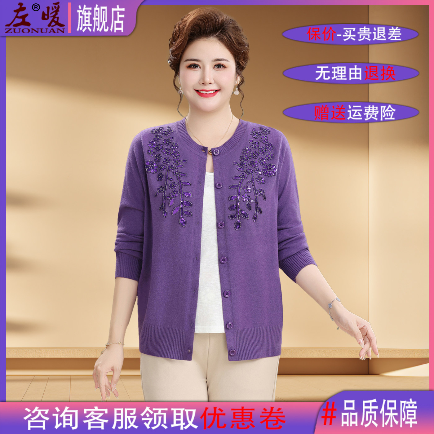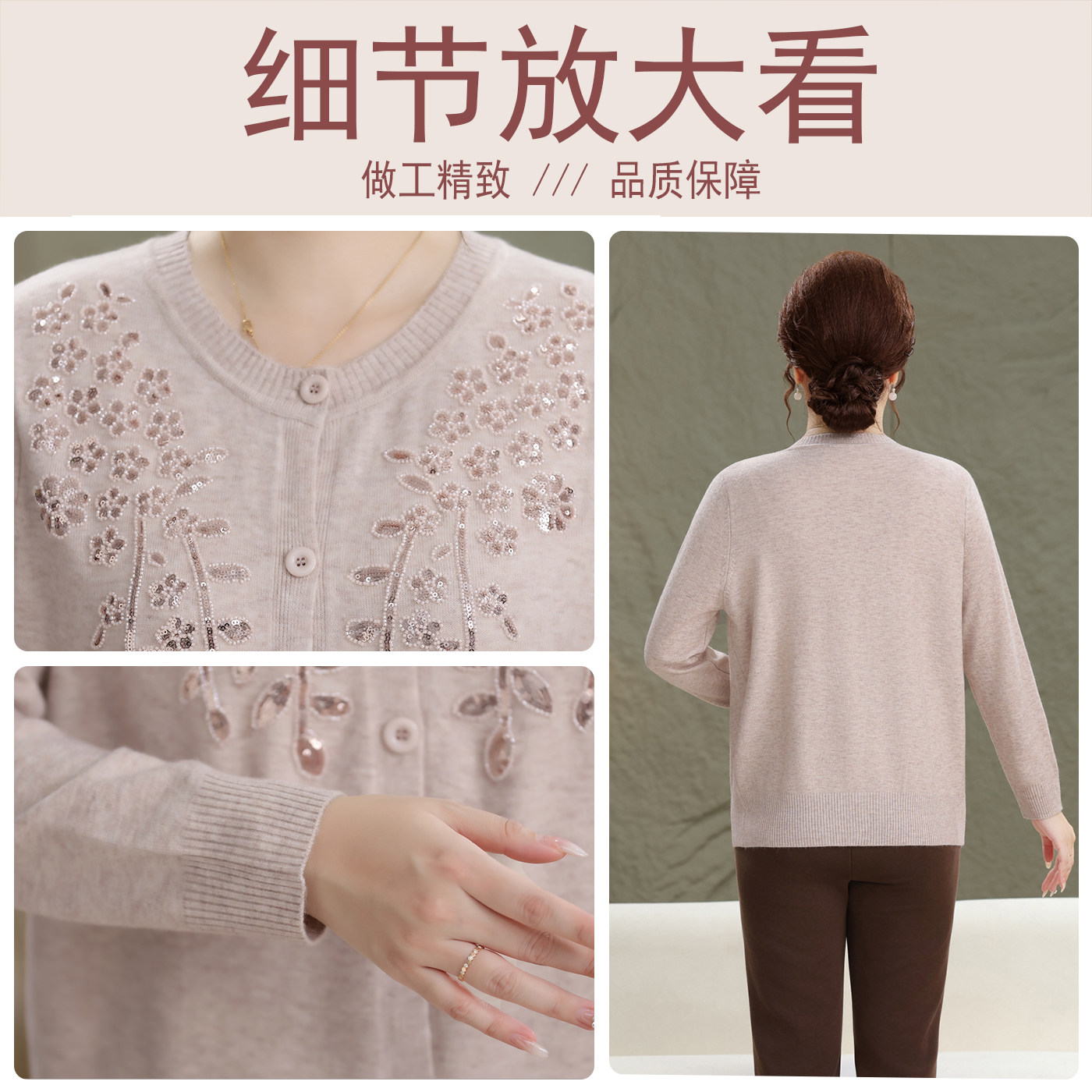 中老年人肥胖妈妈装针织开衫女大码毛衣洋气减龄花朵宽松上衣小衫