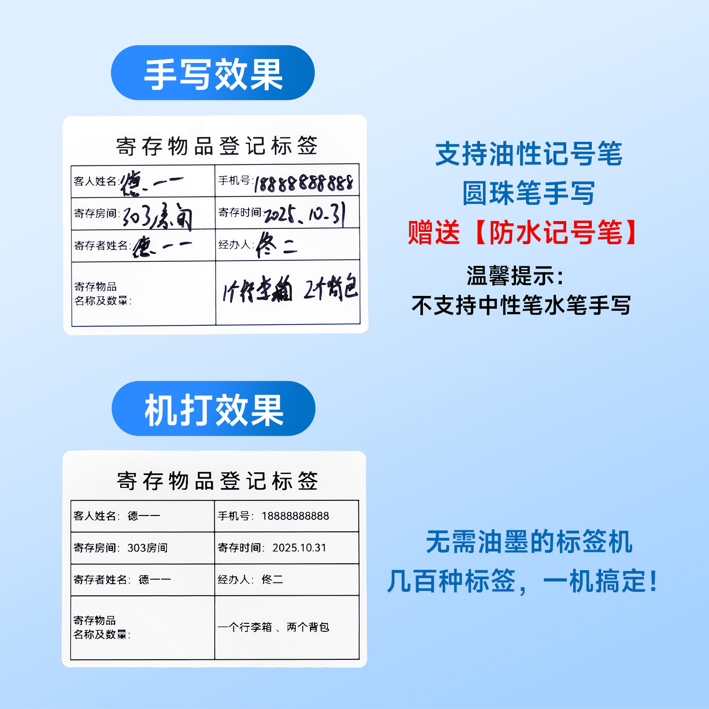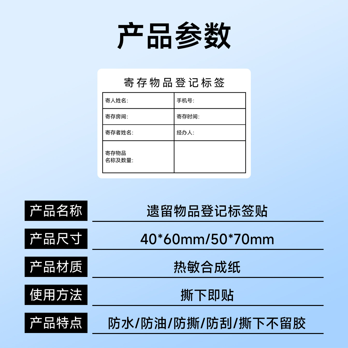 遗留物品标签寄存贴纸防水可移除热敏不干胶标签纸打印机寄存酒店管理宾客遗失物品贴纸logo定制