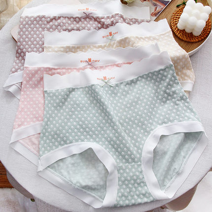 莫代尔大码内裤女200斤胖MM甜蜜波点立体提花云感裸肌裤无痕高弹