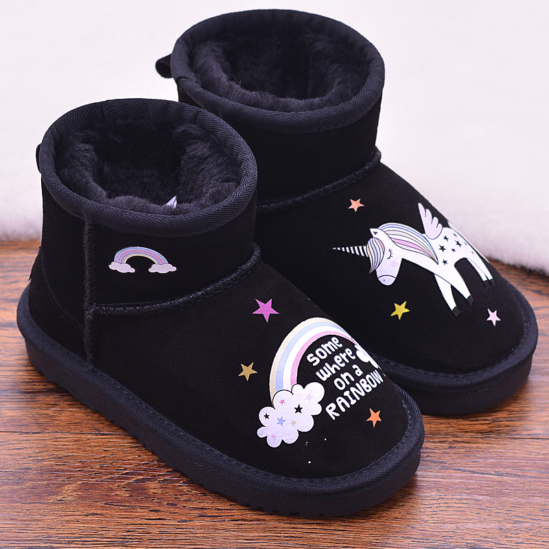 2023冬季儿童雪地靴女宝宝鞋真皮保暖女童短靴公主鞋 儿童短靴子