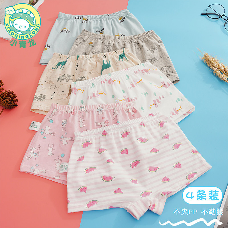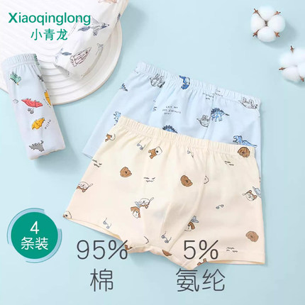 小青龙儿童卡通棉莱卡弹力舒适平角裤男女中大童内裤大码透气短裤
