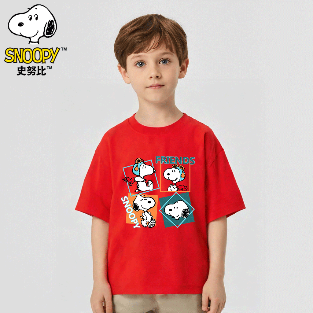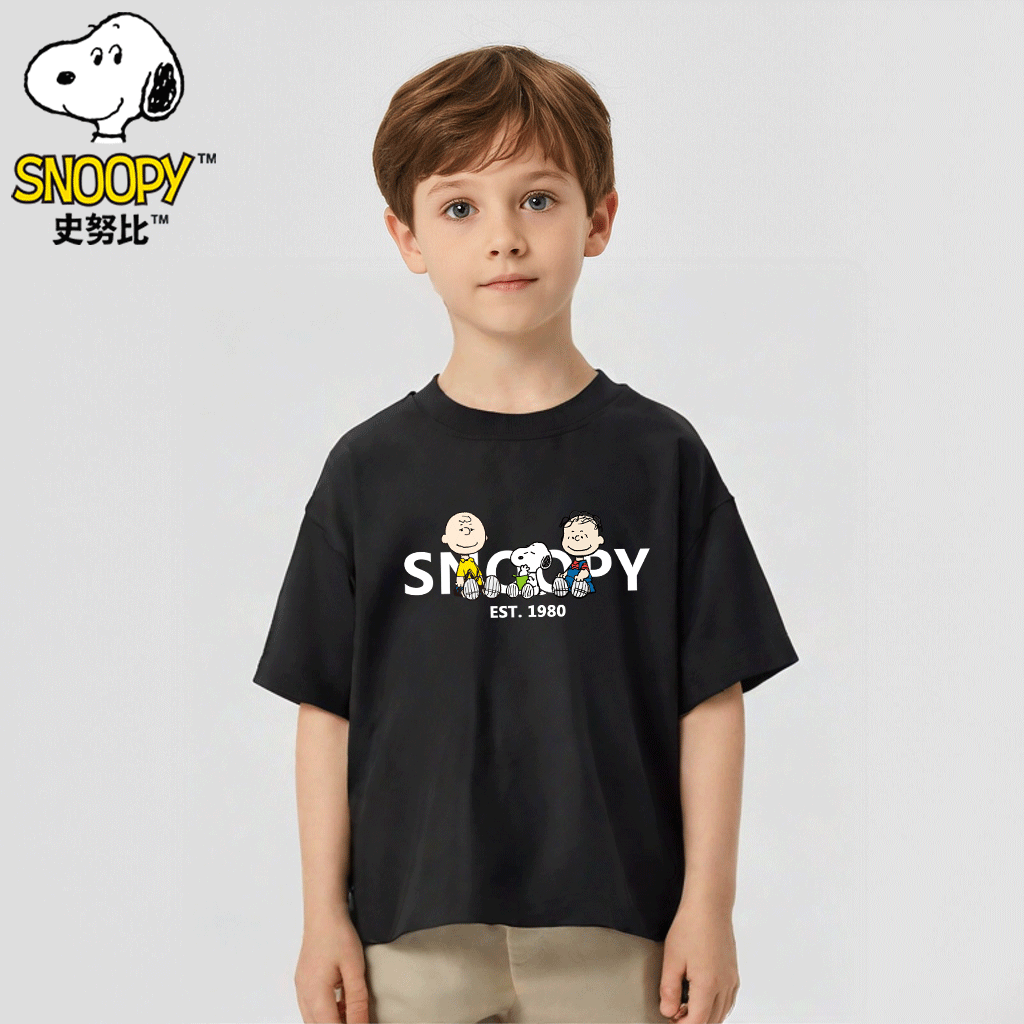 史努比男童短袖T恤夏季2025新款儿童夏装帅气纯棉半袖宽松上衣潮