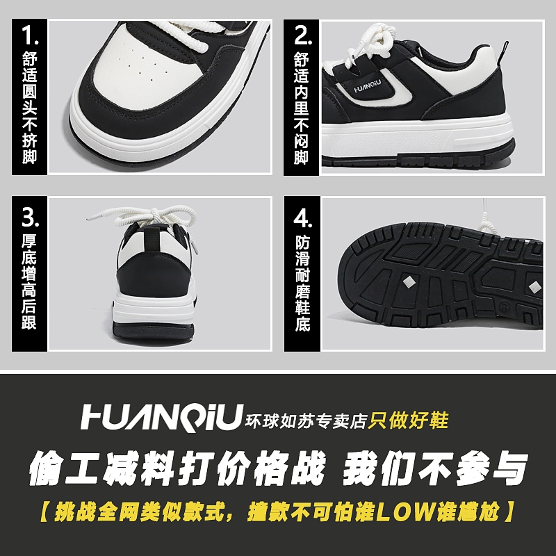 环球黑白熊猫板鞋女2025春秋新款厚底爆款鞋子百搭休闲夏天运动鞋