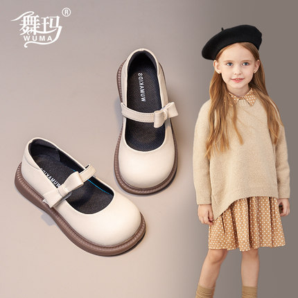 舞玛女童皮鞋公主鞋2026新款春秋软底防滑英伦日常小女孩儿童单鞋
