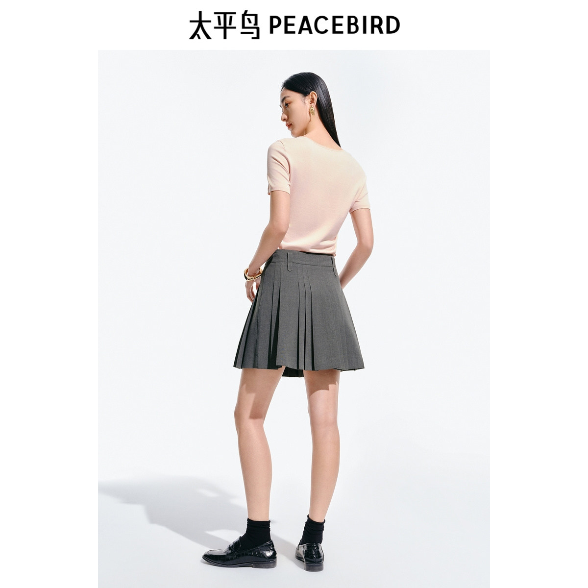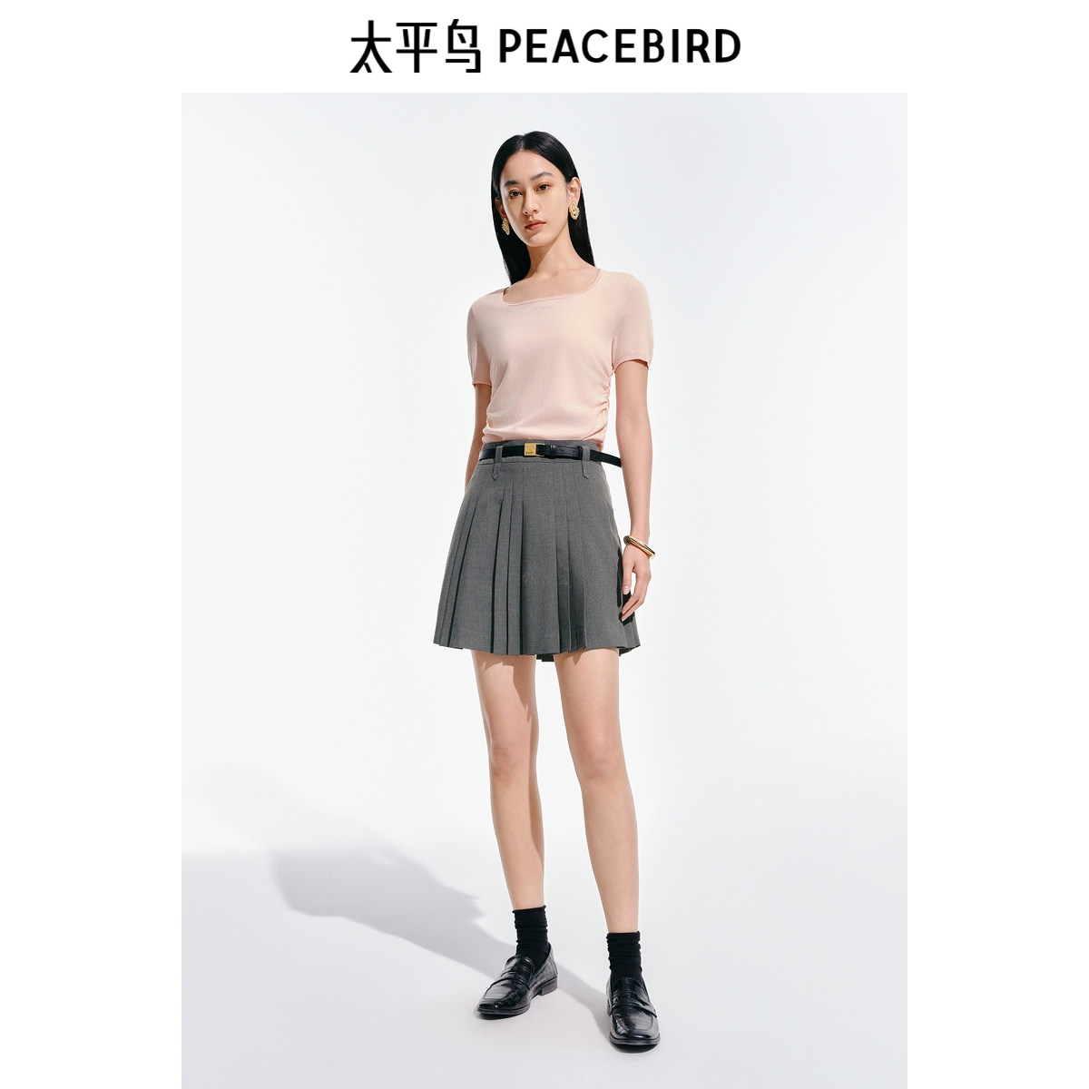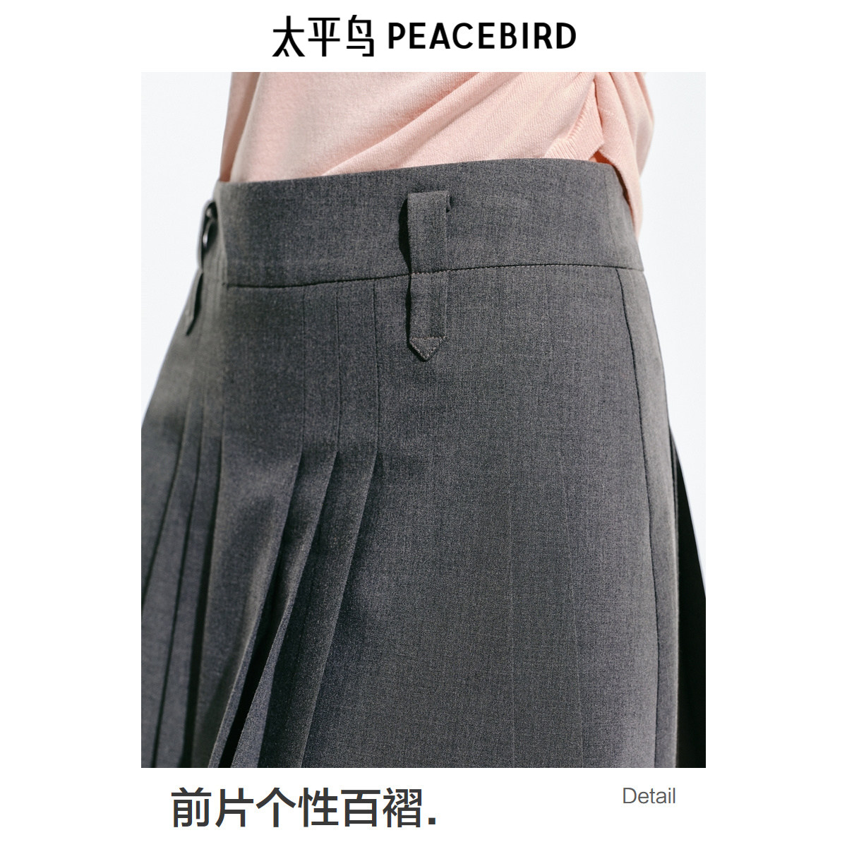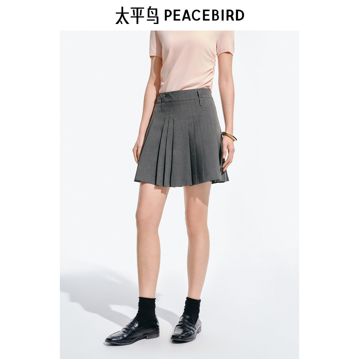 太平鸟百褶短裙女2025夏高腰显瘦灰色西装短款半身裙简约通勤