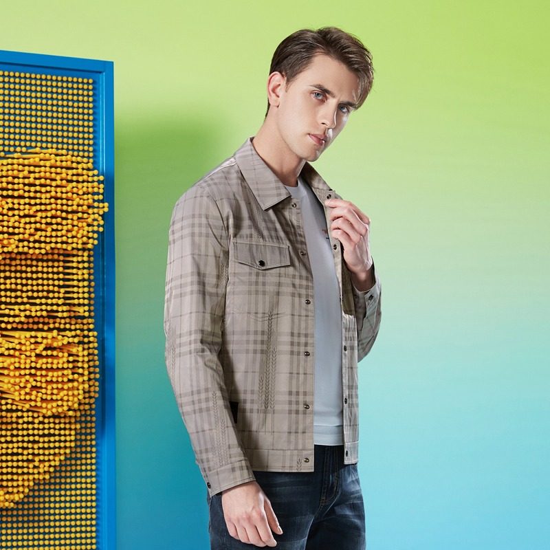 柒牌男士工装清仓夹克春秋格子翻领韩版时尚青年潮外套夹克衫