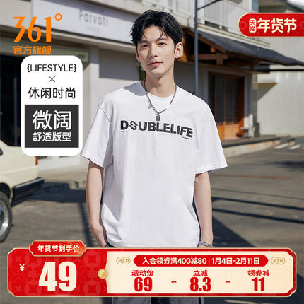 361度运动t恤男士2025夏季透气纯棉休闲宽松亲肤上衣印花圆领短袖