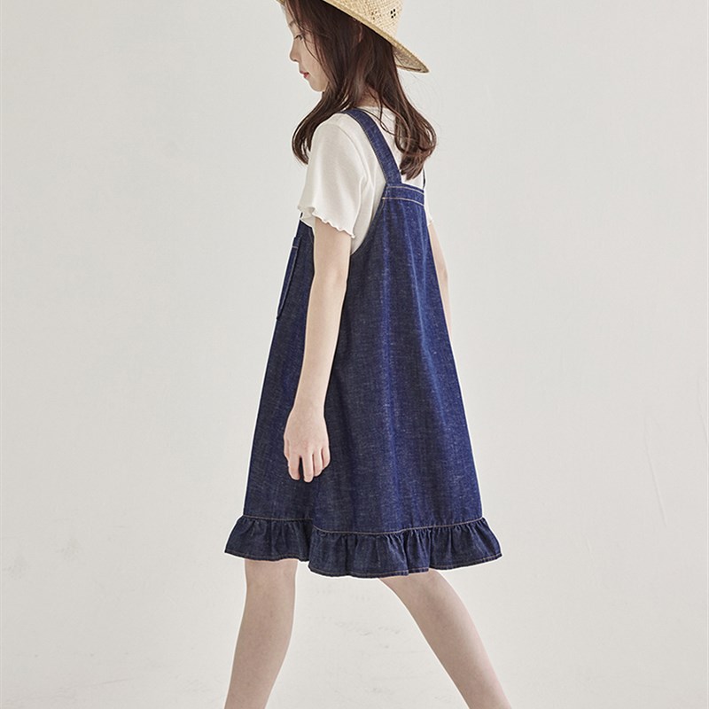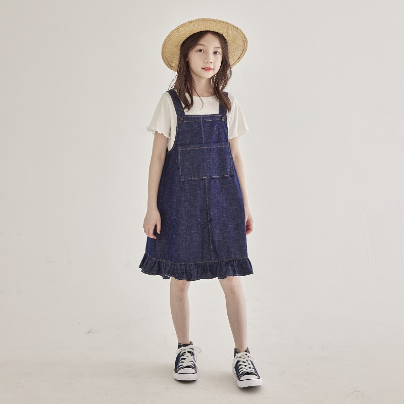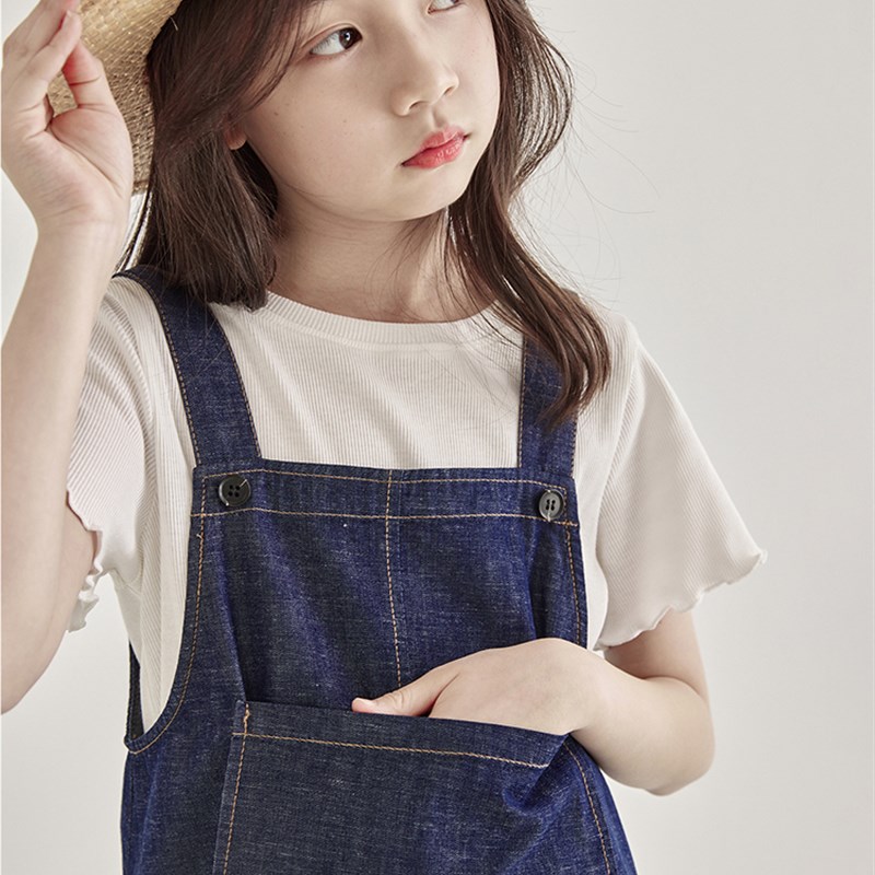 女童荷叶裙摆牛仔裙2024夏季新款儿童背带长裙时尚百搭女宝连衣裙
