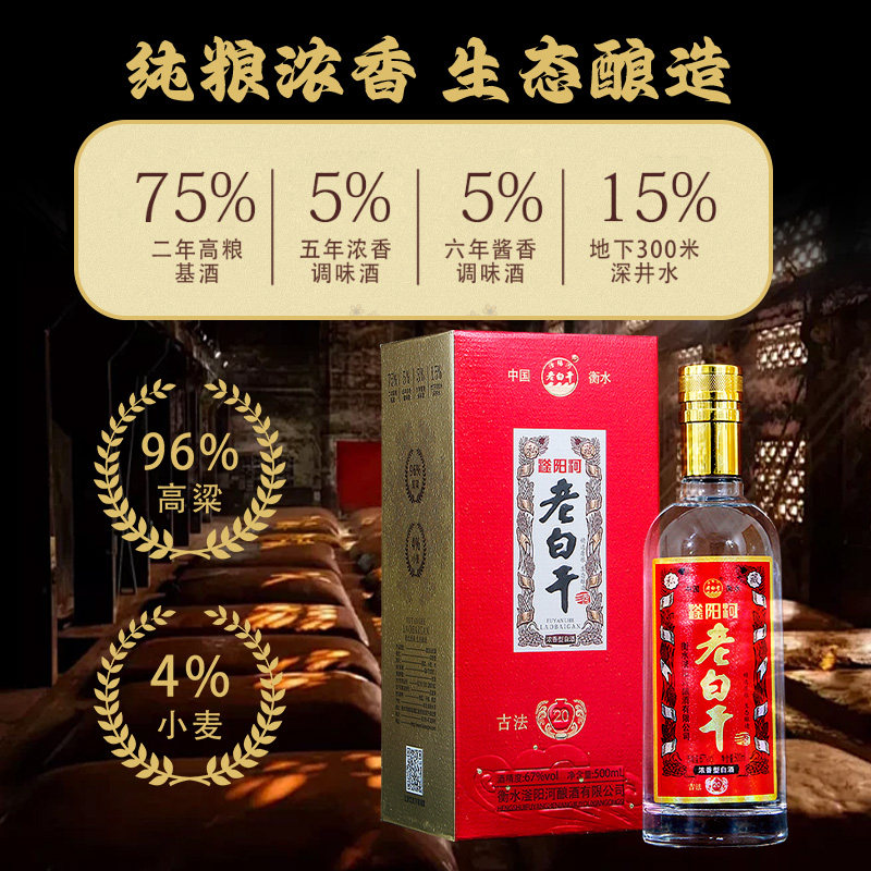 衡水酒老白干67度白酒整箱礼盒装正宗高度纯粮食度高粱酒水