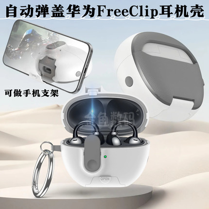 自动弹盖华为FreeClip耳机壳创意手机支架freeclip保护套防摔防丢Huawei FreeClip2耳机套带卡扣开关
