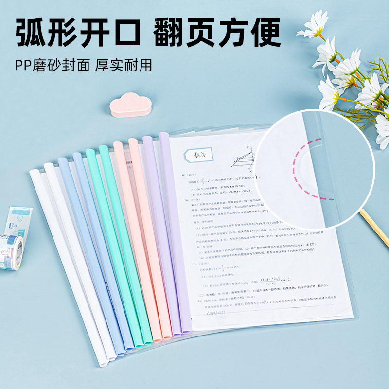 【10个装】得力文件夹a4透明彩色抽杆夹塑料资料册试卷书皮书套文具试卷夹文件透明夹塑料拉杆水滴杆办公用品