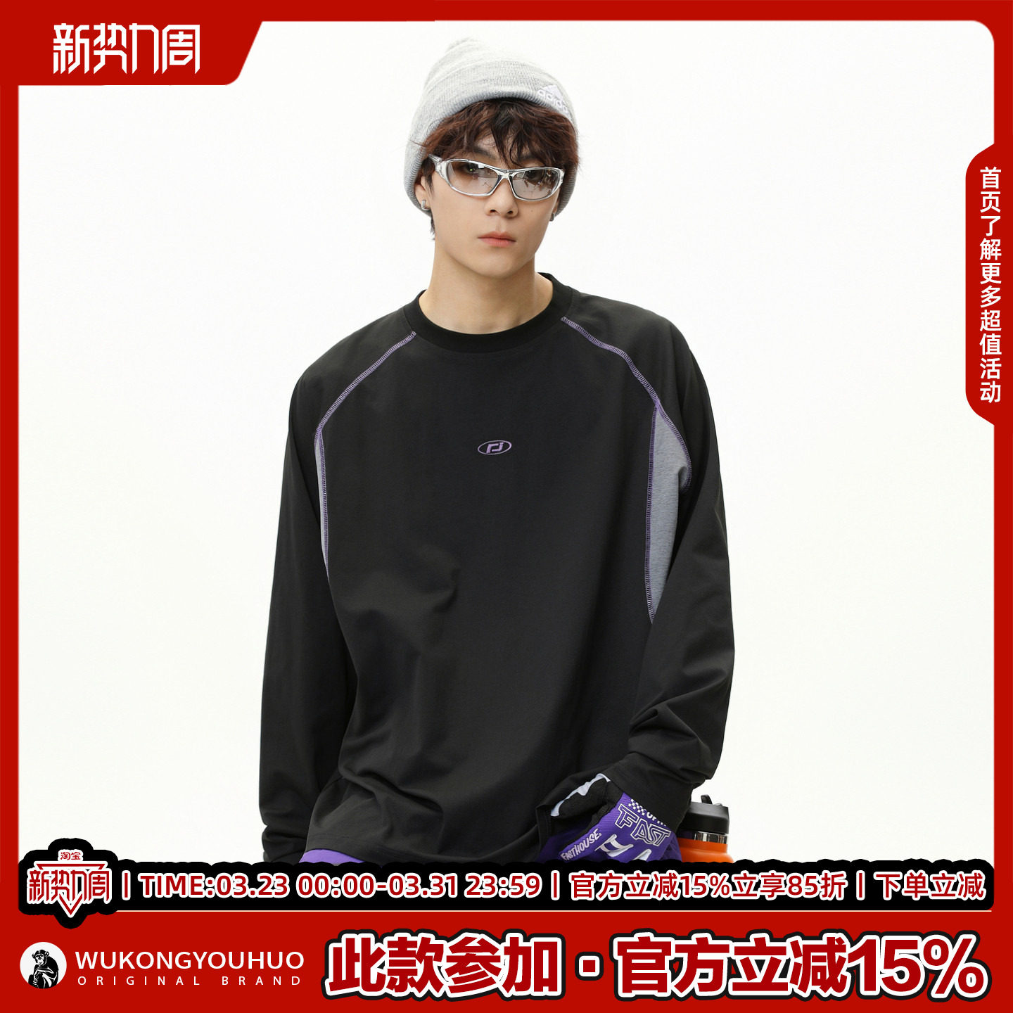 悟空有货户外运动吸湿撞色长袖T恤男女潮牌宽松百搭休闲凉感上衣