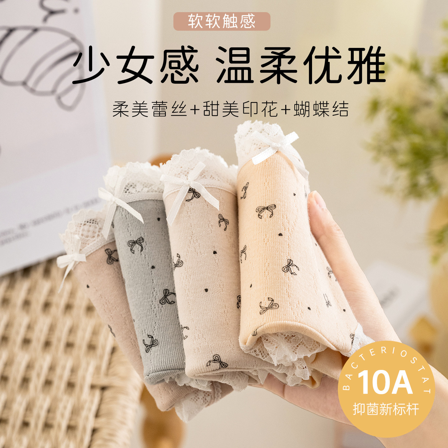 雅鹿纯棉蕾丝内裤女无痕中腰10A抑菌全棉裆少女生纯欲性感三角裤