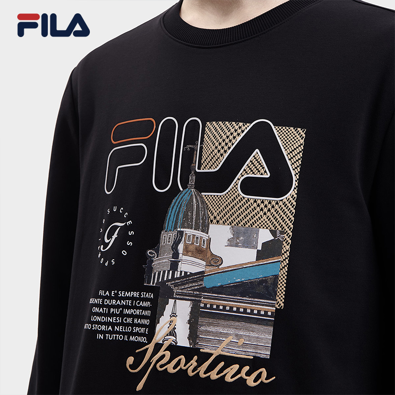 FILA 斐乐官方男子针织套头衫2023秋季基础简约印花长袖卫衣