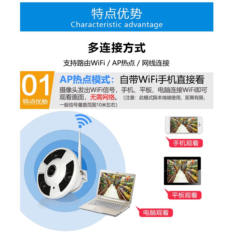 wifi鱼眼广角全景摄像头家用高清夜视AP网络监控器摄影警戒一体机