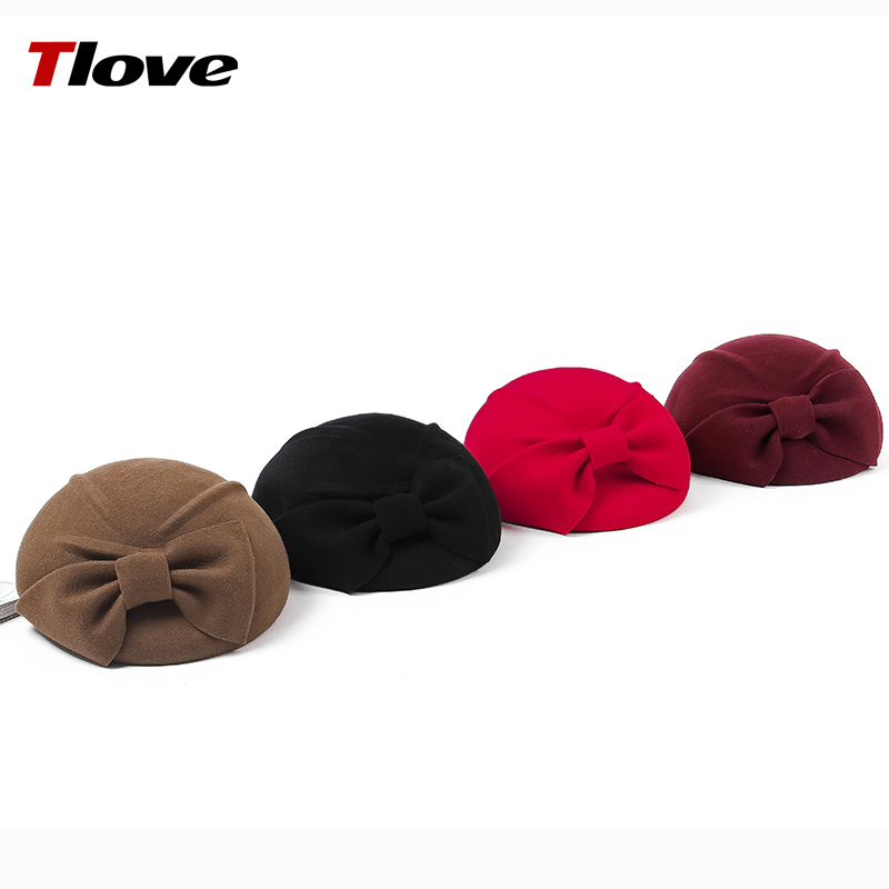 2670时尚百搭羊毛帽子女士秋冬季韩版减龄蝴蝶结立体毛呢贝雷帽