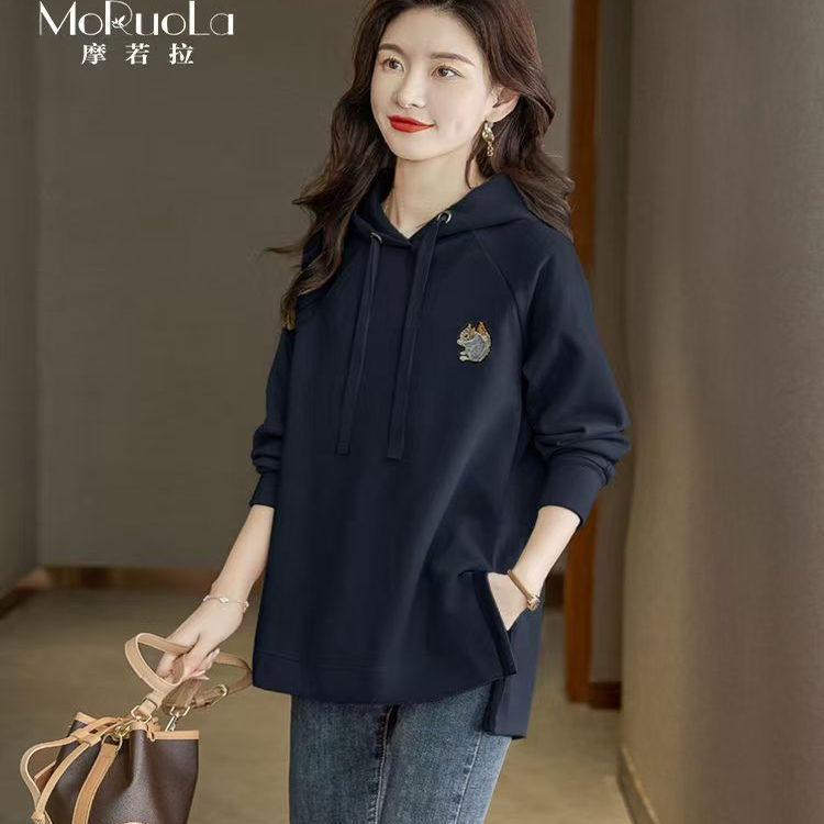 中长款卫衣长袖女初秋下摆开叉过臀连帽时尚卫衣宽松显瘦休闲上衣