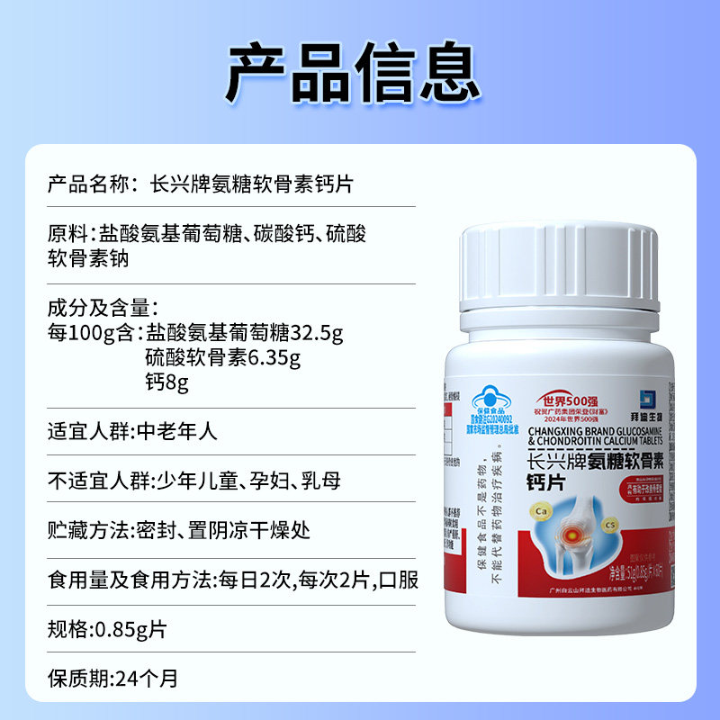 白云山氨糖软骨素钙片中老年护关节疼痛补安糖增加骨密度官方正品