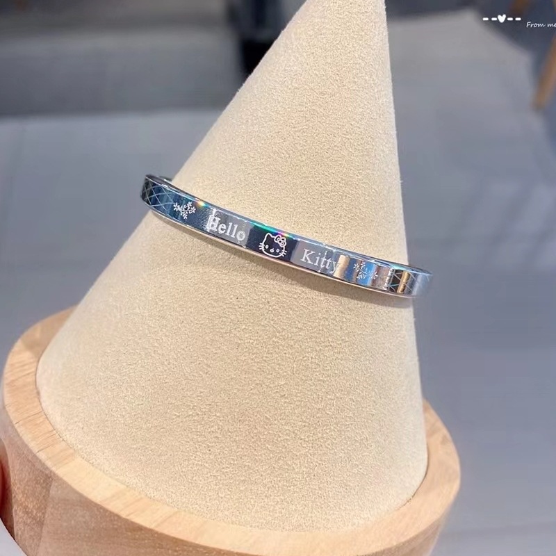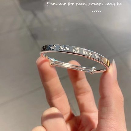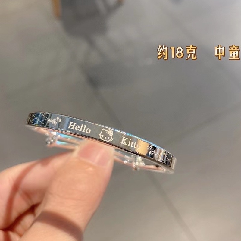 镀银七彩雪花kt猫中童推拉手镯女孩学生可爱