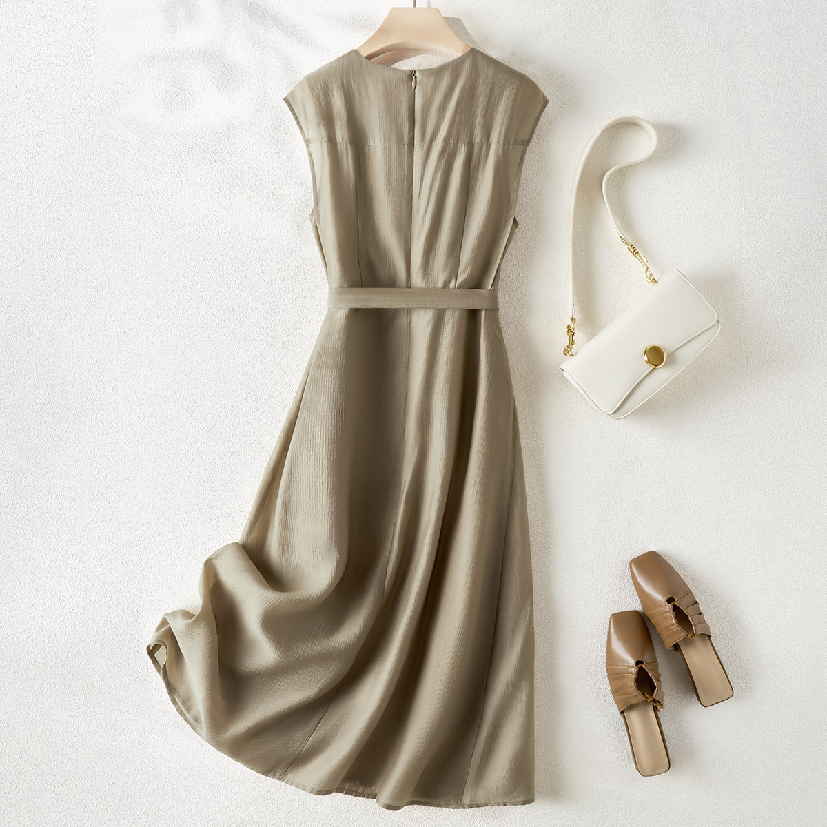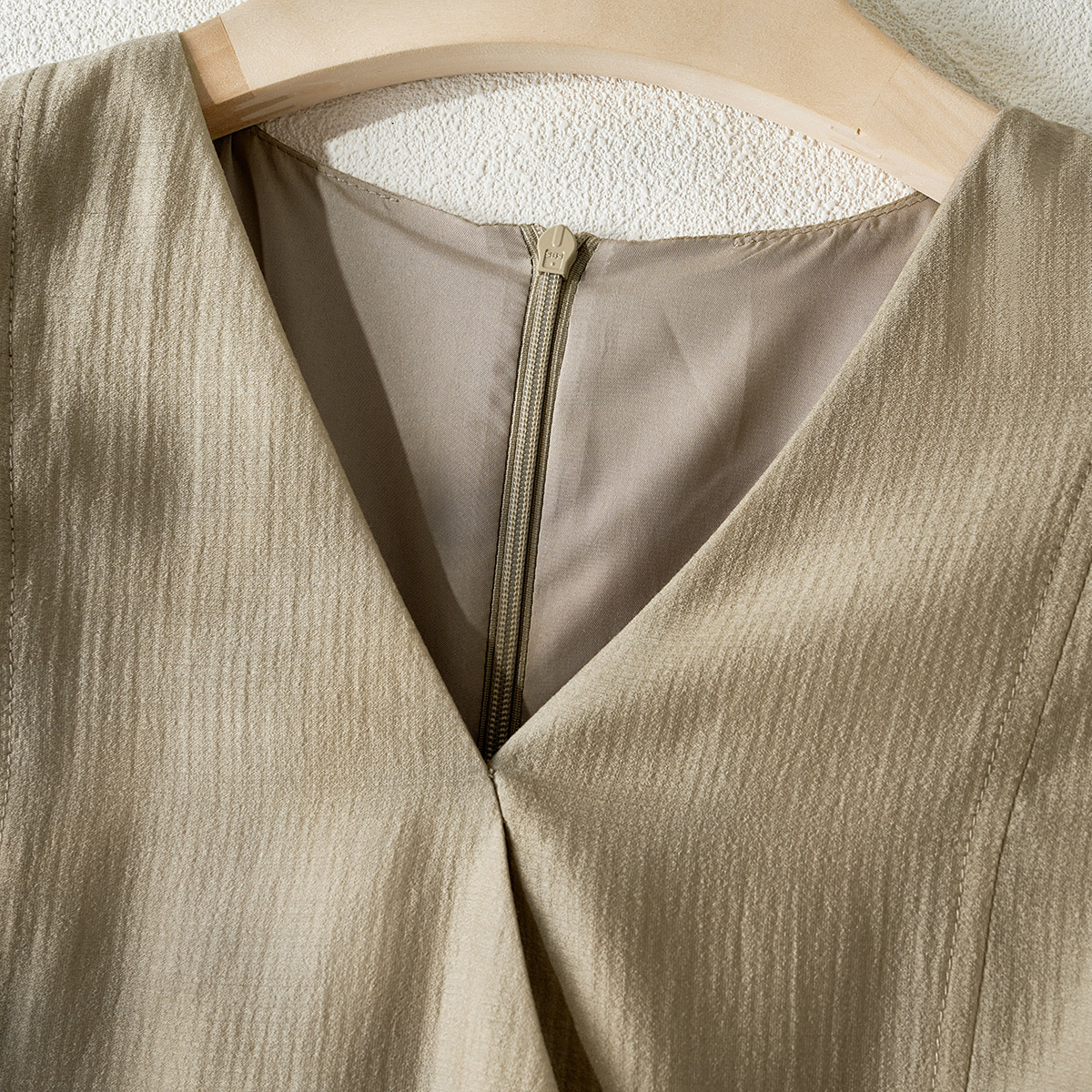 IHIMI海谧天丝V领肌理感裙子2025夏季新款女时尚高级感收腰连衣裙