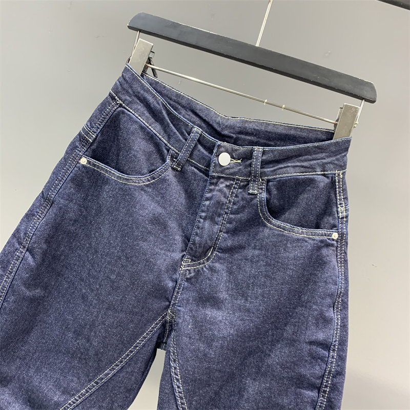 深蓝色吊裆牛仔哈伦裤女2026年春季新款韩版高腰宽松显瘦九分垮裤