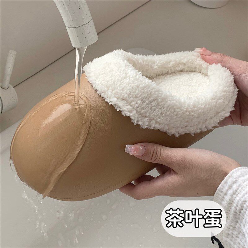 简约纯色防水软底棉拖鞋少女冬季室内G家居保暖毛绒绒月子鞋鹅蛋