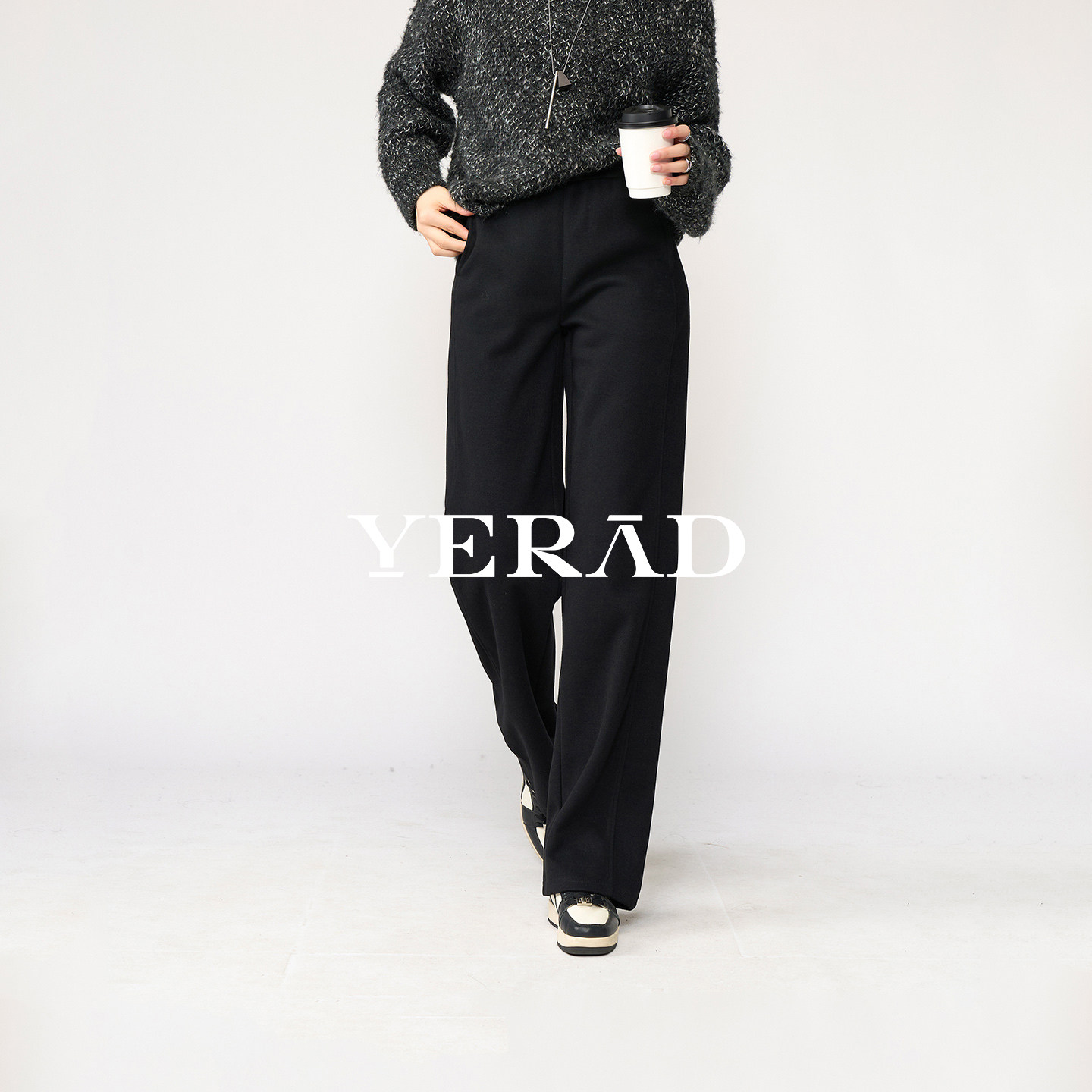 娅丽达羊毛针织加绒直筒裤女冬