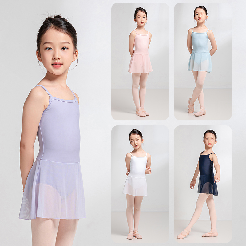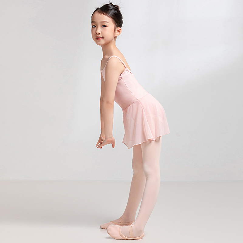 Sansha 三沙儿童吊带舞蹈服女芭蕾舞练功服一件式带裙连体服训练