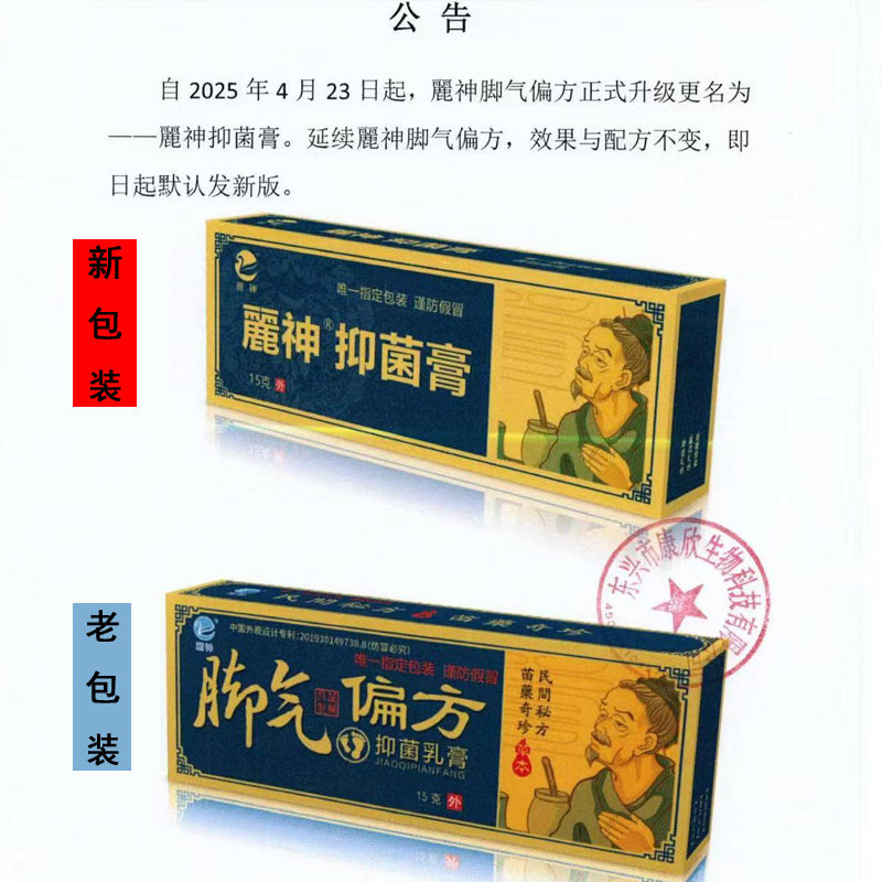 麗神脚气偏方水泡脱皮止痒抑菌乳膏汗神器药包正品黄氏真菌王感染