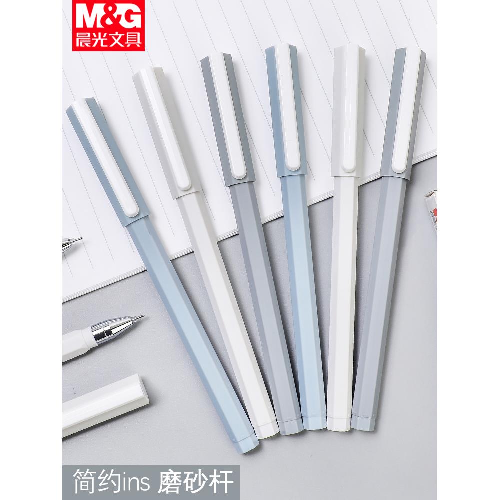 晨光简约灰谐中性笔0.5全针管学生用日系ins冷淡风诙谐水笔碳素黑