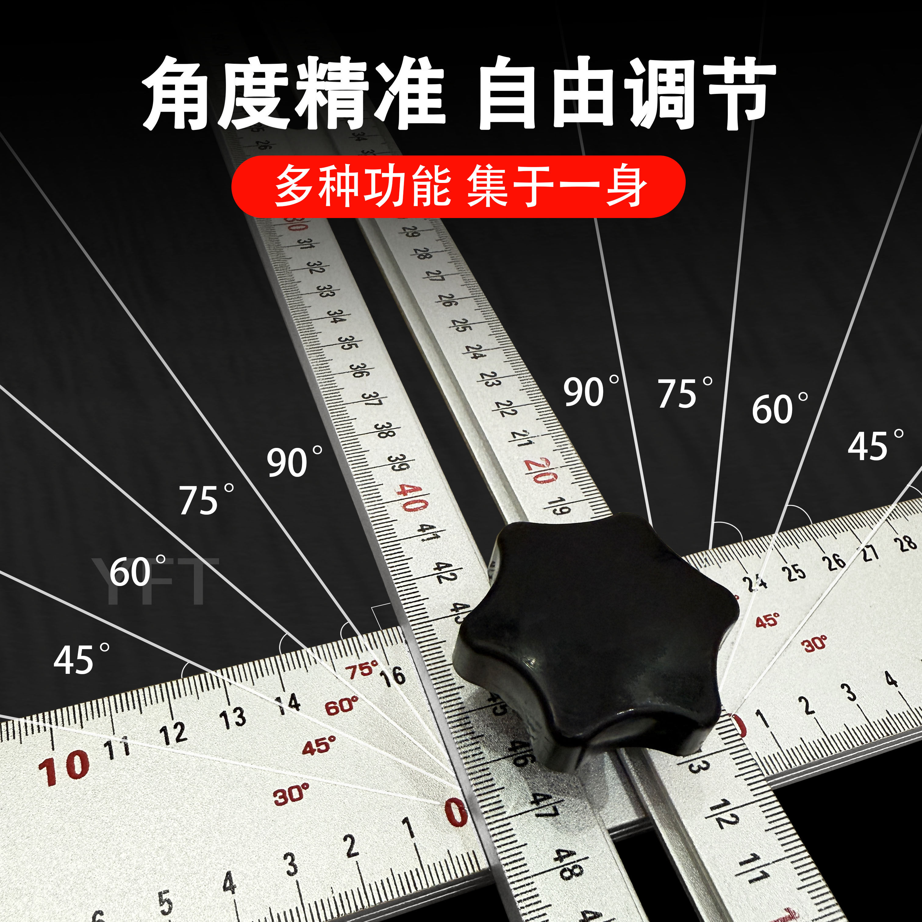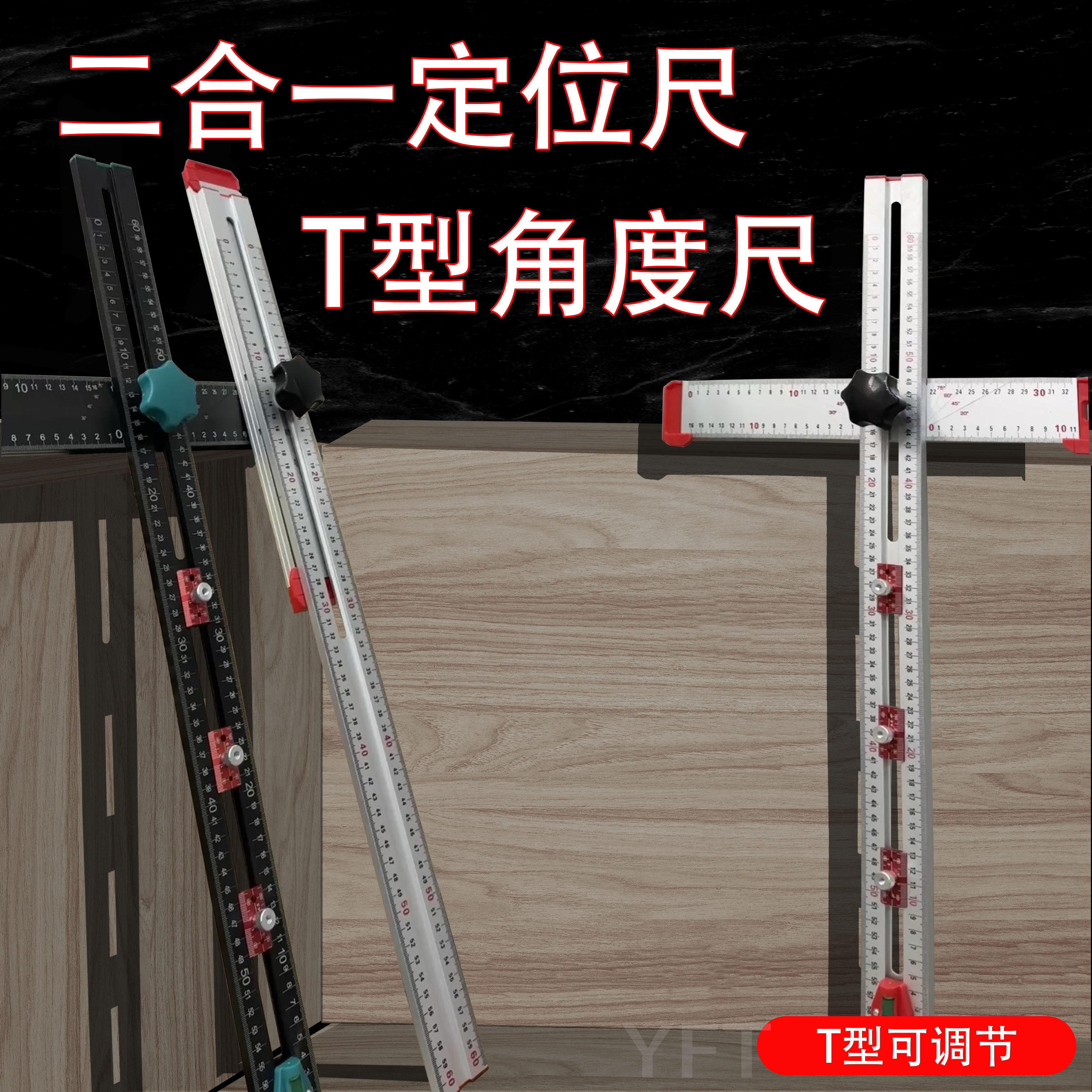 新款铝合金二合一T型尺靠尺测量角度划线拉手孔木工多功能丁字尺