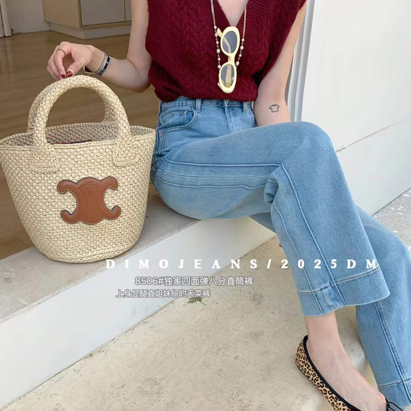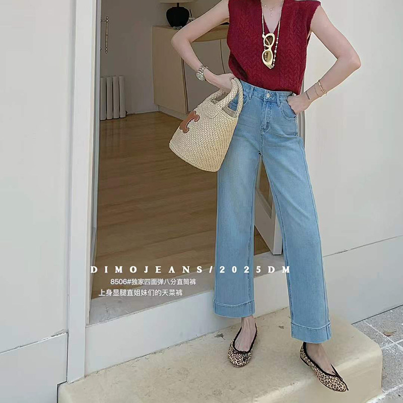 DIMO2025春新款高腰小个子直筒牛仔裤女烟管裤显瘦宽松九分法棍裤