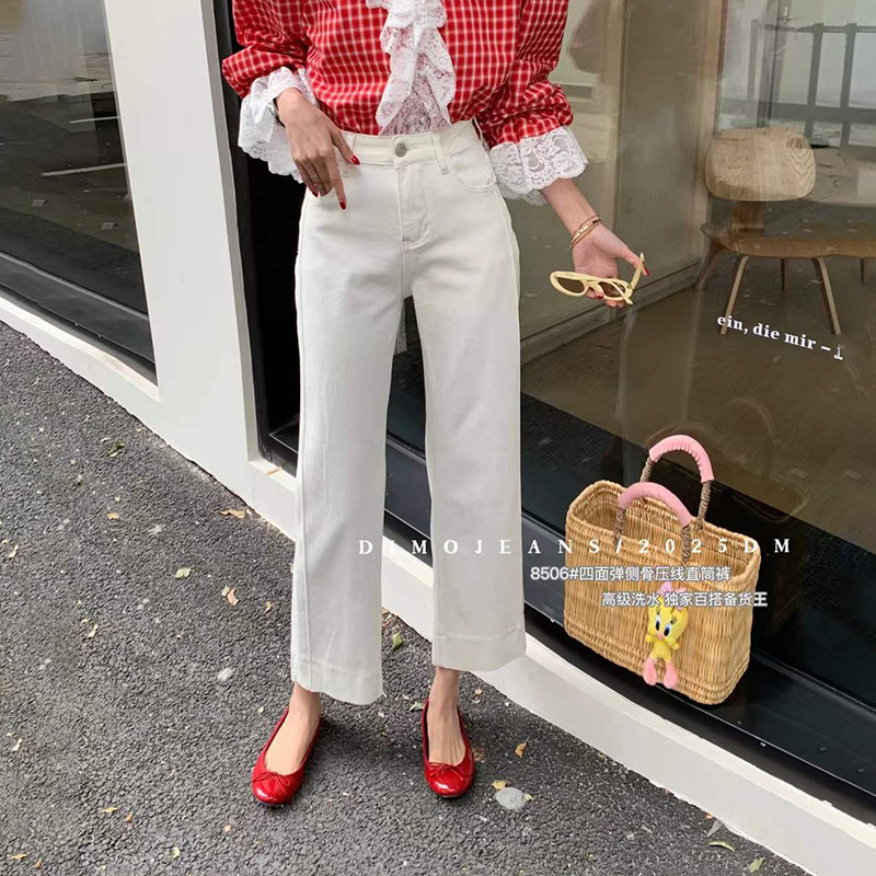 DIMO~高腰直筒九分烟管牛仔裤