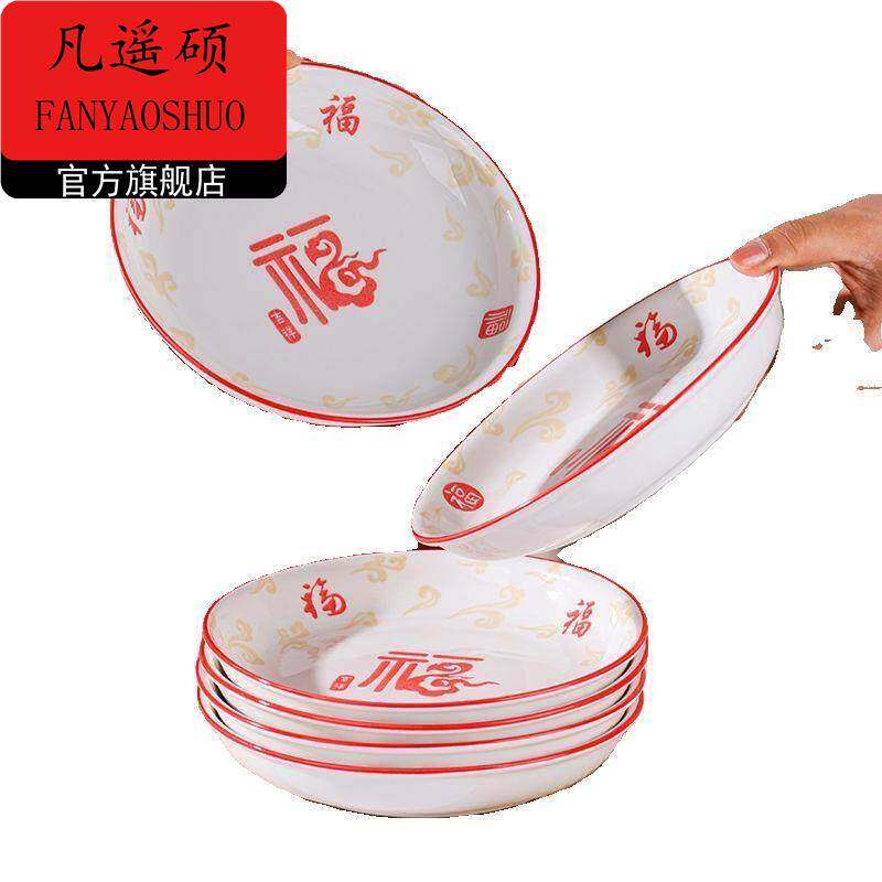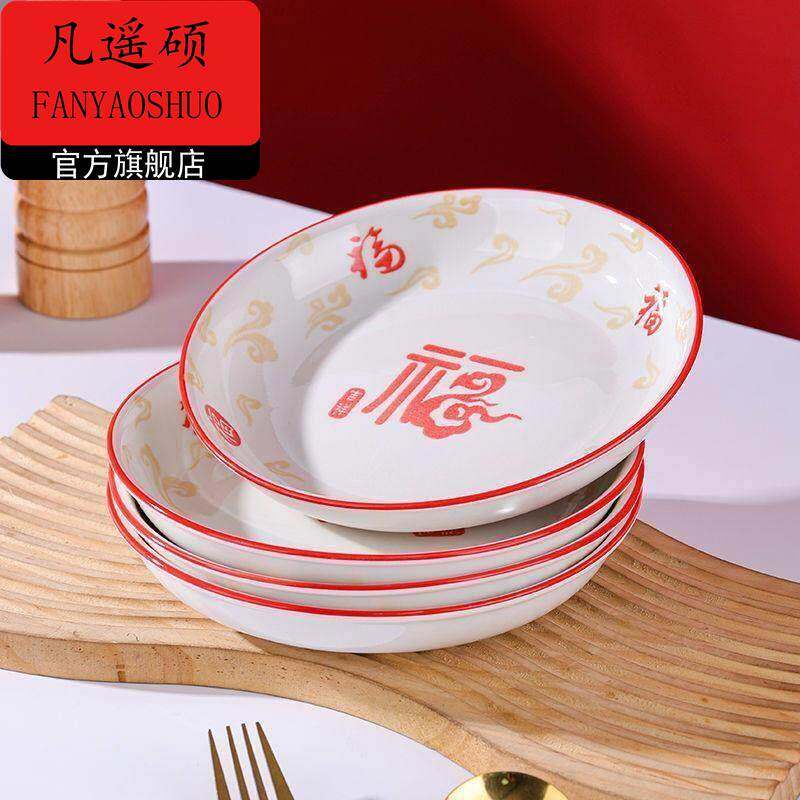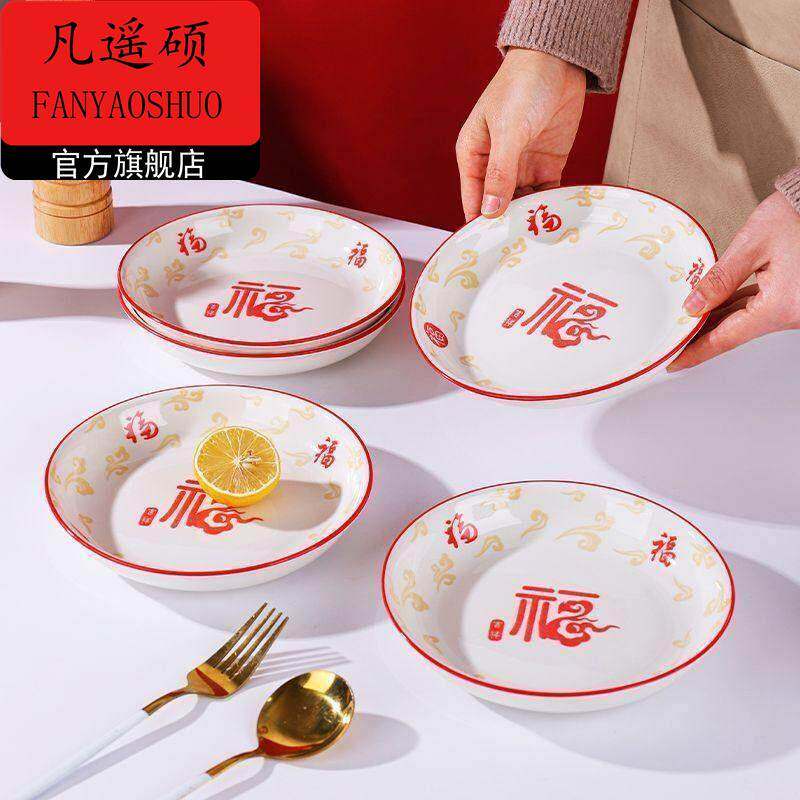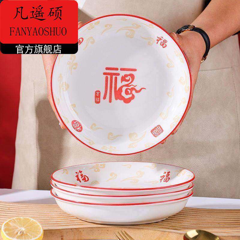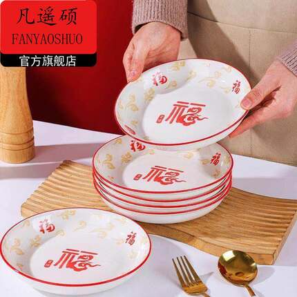 新年餐具祥马纳福盘子家用陶瓷高颜值网红盘餐盘加厚深盘菜碟炒菜