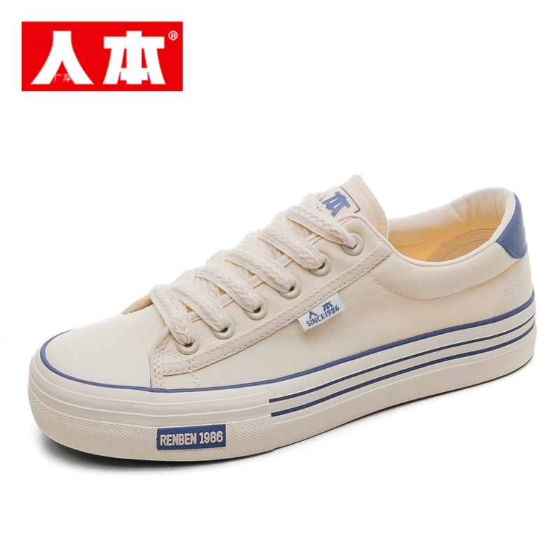 人本白色帆布鞋男士低帮布鞋男板鞋学生休闲小白鞋球鞋百搭男鞋