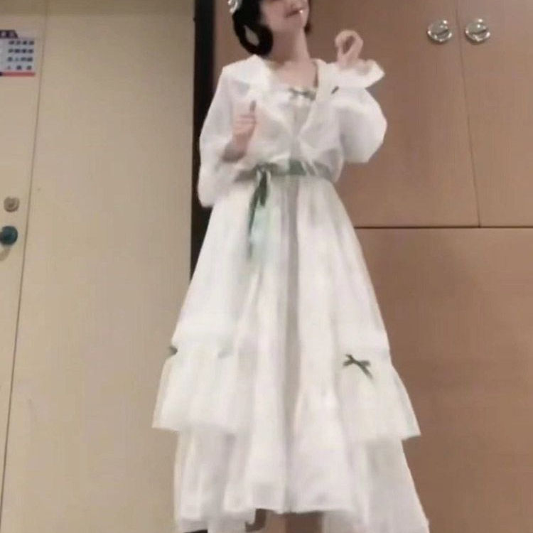 法式田园风碎花蝴蝶结吊带连衣裙女学生超仙小仙女防晒开衫两件套