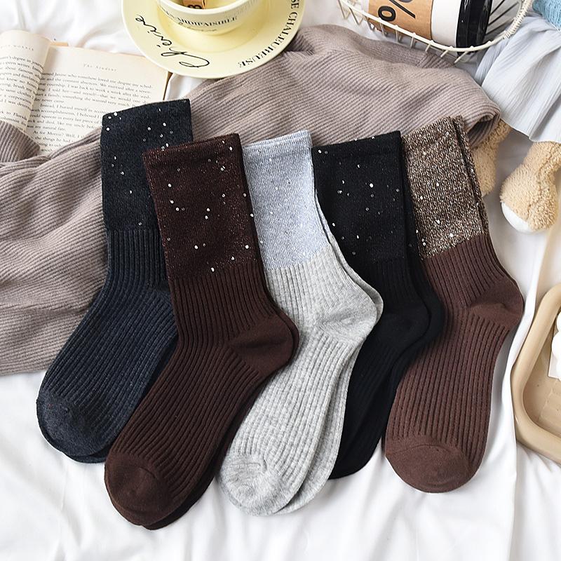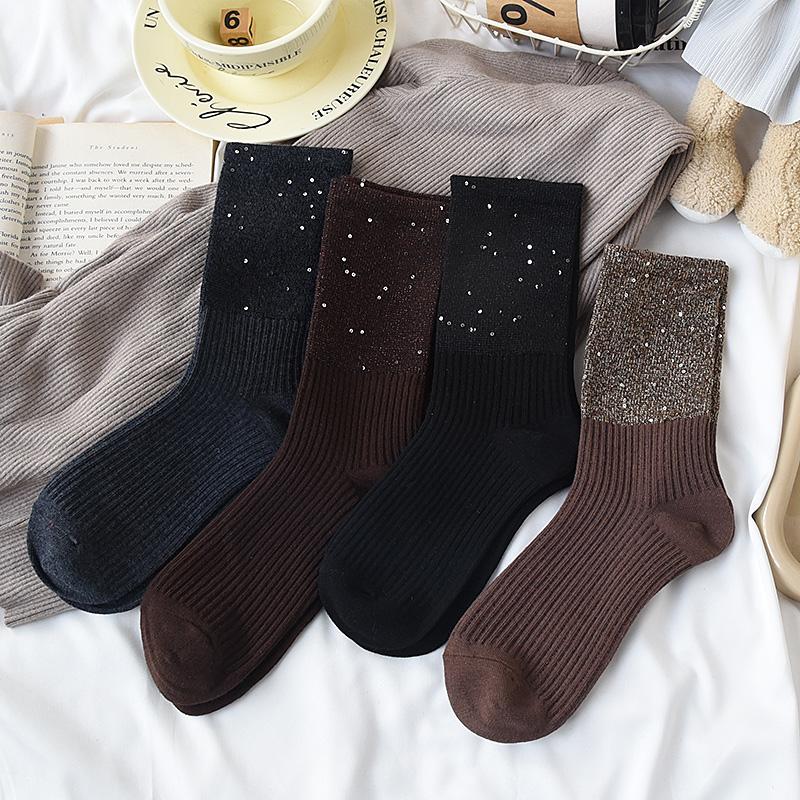 袜子女秋冬中筒袜满天星亮片百搭洋气个性中筒纯棉外穿堆堆饰品袜