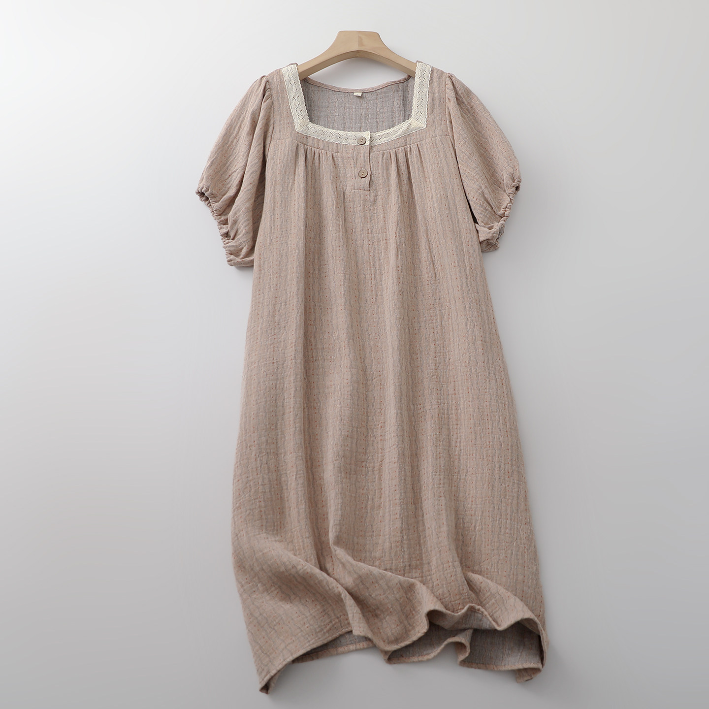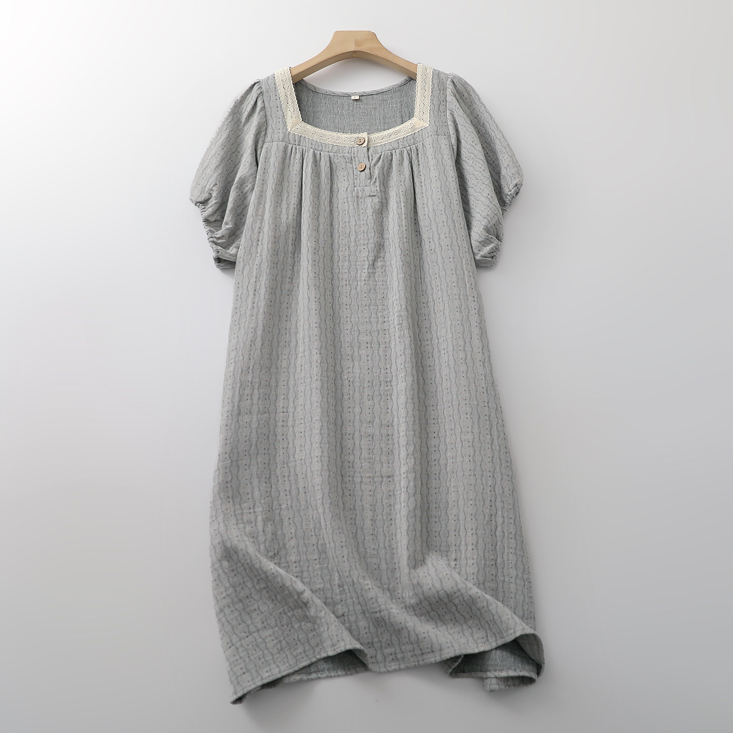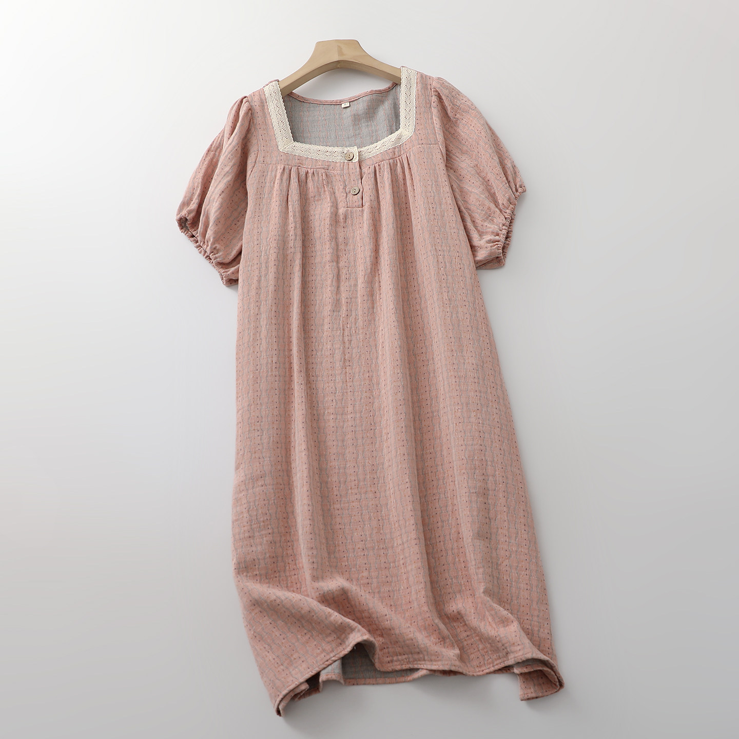 法式方领蕾丝波纹点点睡裙女纯棉纱薄款夏季宽松家居连衣裙可外穿