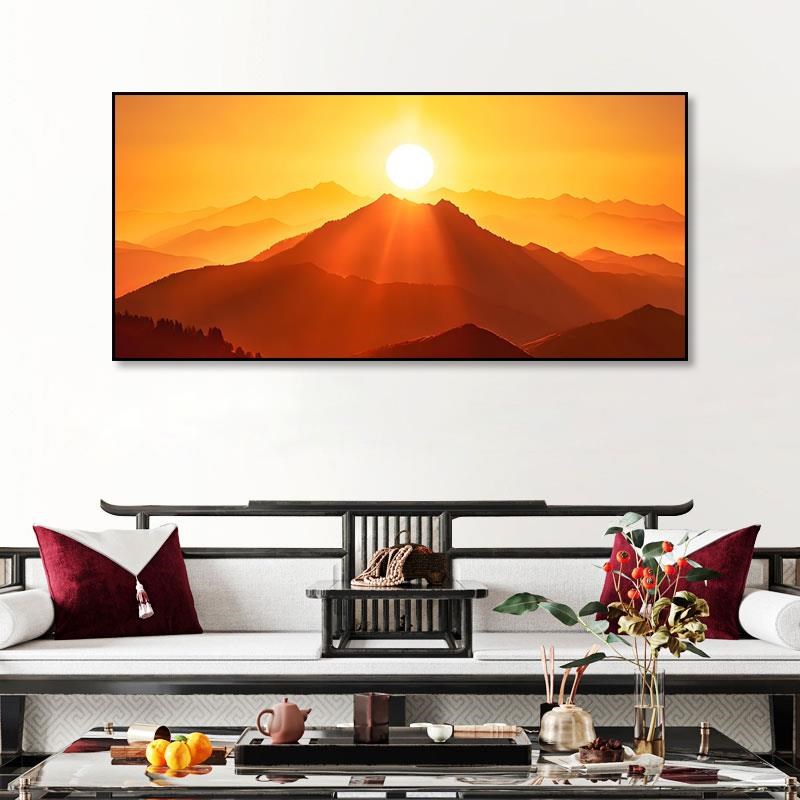 定做日升出东挂方画客沙发背景头运D旭日东装墙饰画厅鸿当金黄太