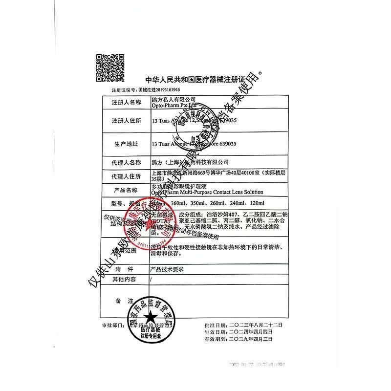 欧普康视镜特舒护理液硬性隐形眼镜润眼液RGP/OK角膜塑形镜护理液