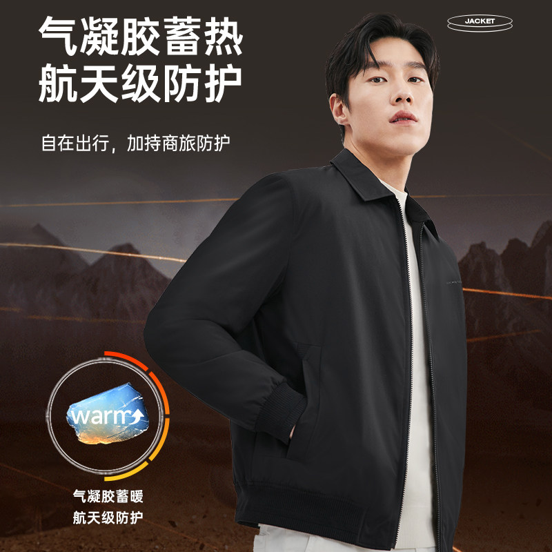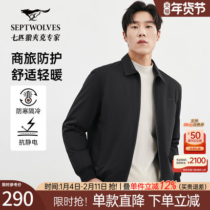 [夹棉]七匹狼抗静电行政夹克翻领外套男士秋季新款商务休闲茄克男