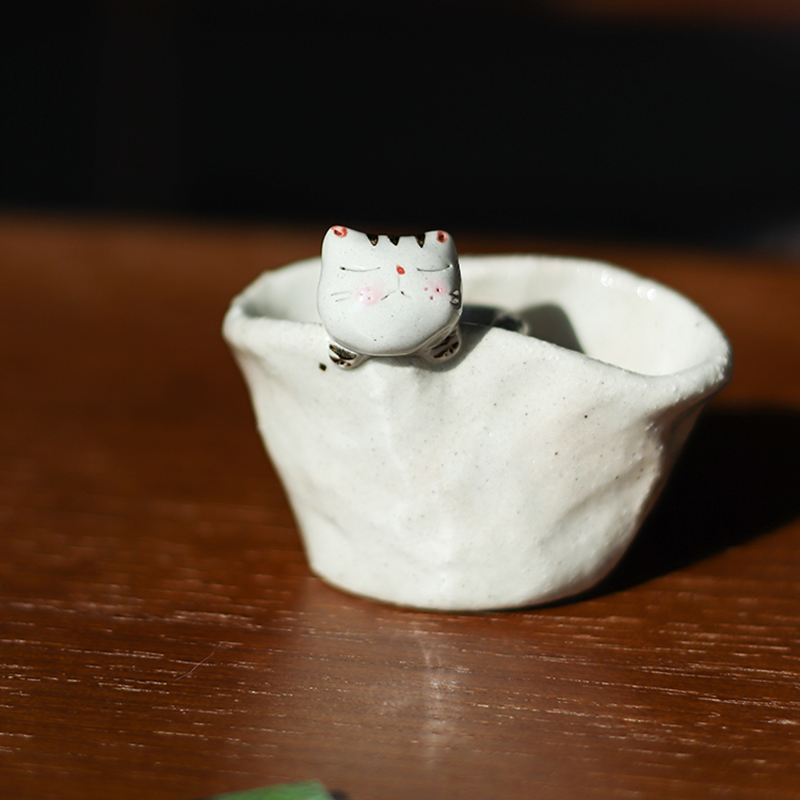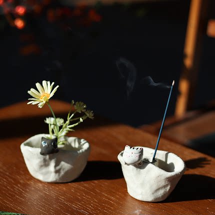 日本进口濑户烧粗陶手作花瓶花器可爱猫咪插花器皿桌面装饰小摆件