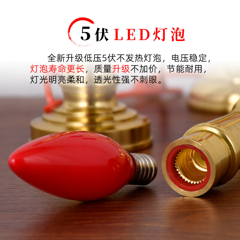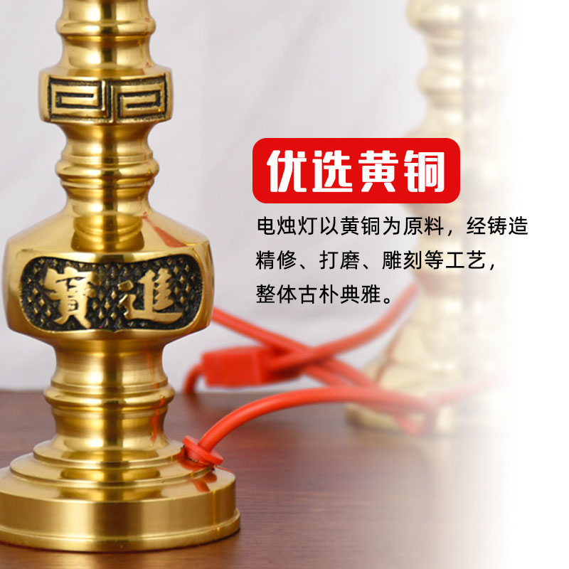 纯铜招财蜡烛灯LED长明供灯佛前神台烛台家用供奉供佛电子财神灯