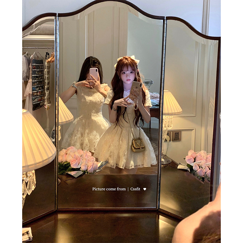 迟伞伞珠片刺绣手工蕾丝领连衣裙
