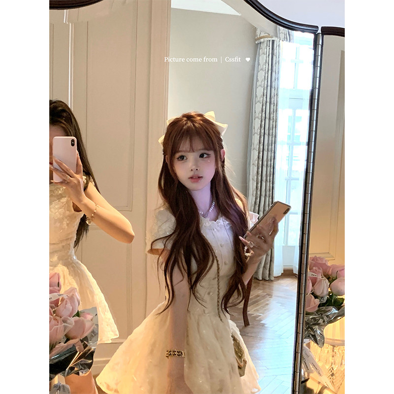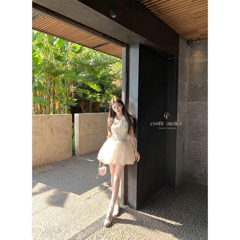 迟伞伞26/ss Luna stolen 珠片刺绣手工蕾丝领无袖短袖连衣裙短裙