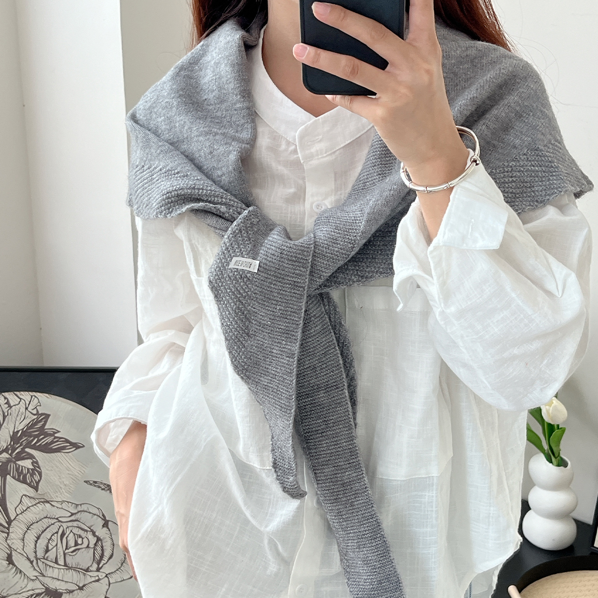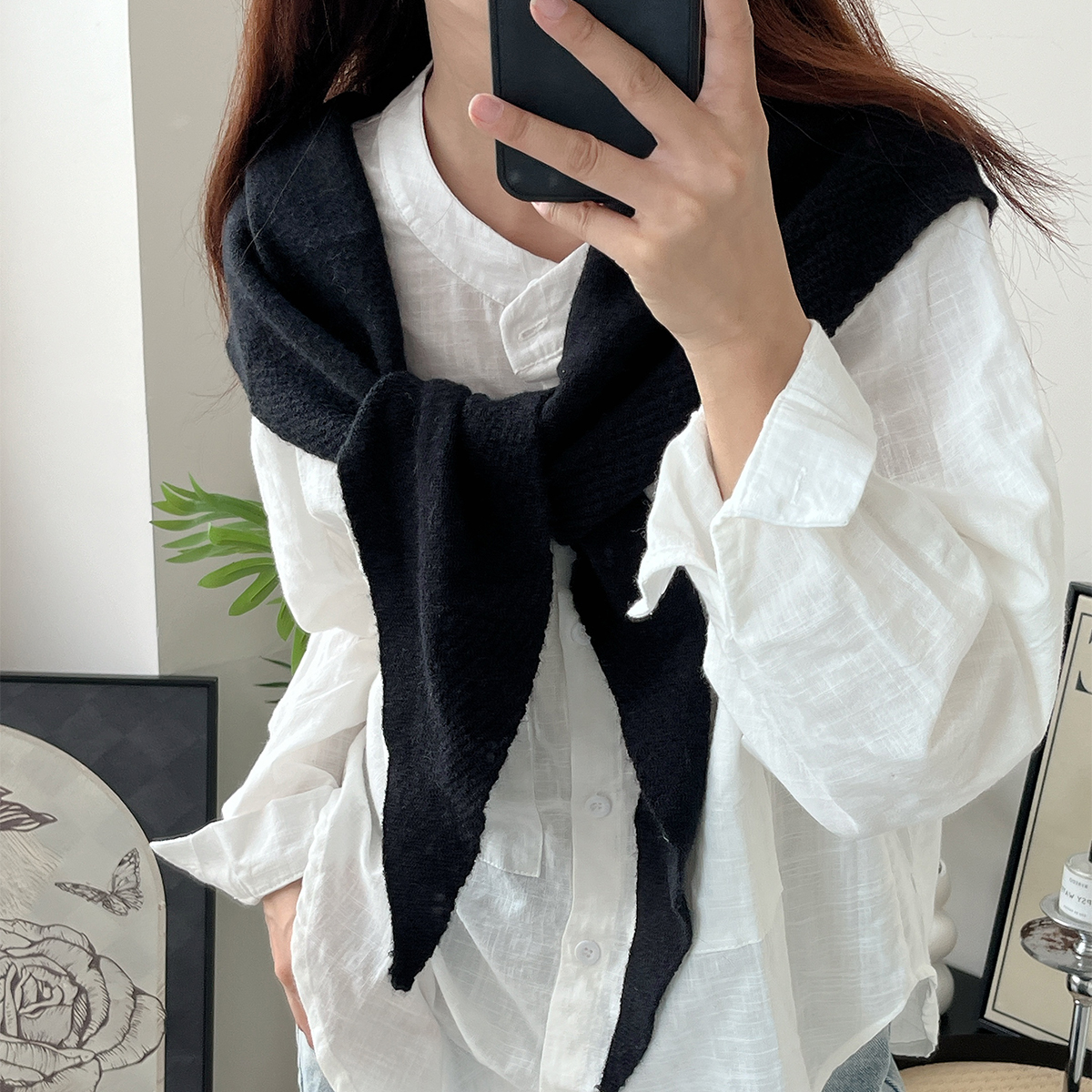 韩版ins纯色简约风针织三角披肩外搭女秋冬季保暖护颈假领子围脖