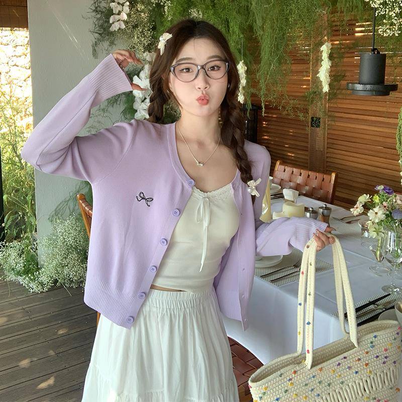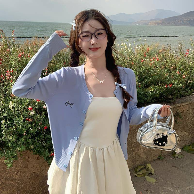 苏三三 冰丝开衫配吊带裙子女夏季复古红色防晒罩衫针织外套上衣