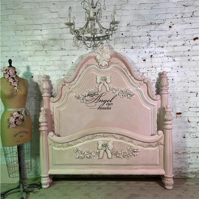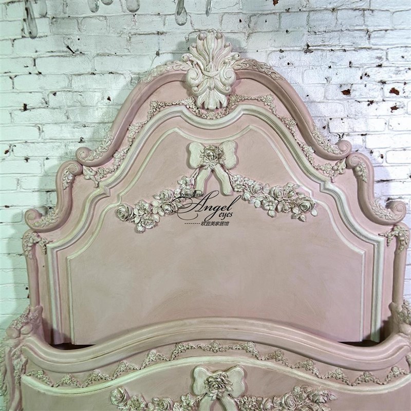 实木床法式复古做旧雕花女孩卧室公主床美式乡村1.8米双人床婚床